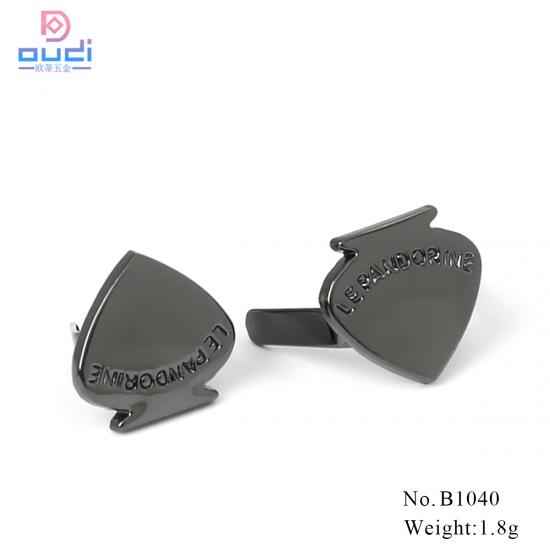 Lovely Heart Shaped Metal Logo Tags For Handbags??Tote Bags??Purses etc! Can be customized different sizes ??shapes and logoes! Made of zinc alloy material, which is rust-resistant and hard engough! Dark Gun Metal Color! With feet on back, which is easily for assembling on bags!