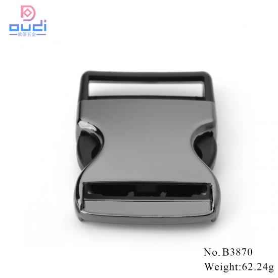 Half zinc alloy +half plastic side release buckle are with more competitive price than full zinc alloy buckle , with its lighter weight , but very good tensile and lock function . they are oftenly used on bag straps ,backpack belts and luggage bags .