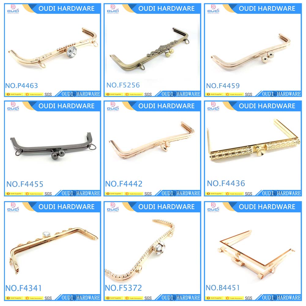 Our production comes mostly in hanging plating with shiny and smoothful surface . the purse frame can glued on fabrics on leathers which is easy assemble .  with different variations to match clients requirement .
