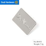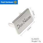 B1032 Logo Engraved Rectangular custom shiny silver metal logo labels for handbags